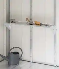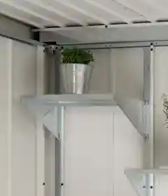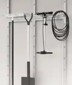 Hochwertiger Stauraum für den Garten. Dank ihrer robusten Konstruktion und des Stahlbleches mit hochwertiger Coil-Coating-Beschichtung ist das Juno-Gerätehaus wartungsarm und sowohl witterungs- als auch schimmelresistent. So haben Sie lange Freude an Ihrem Gerätehaus. Das Motiv Modern setzt mit seinen schmalen Lamellen klassische Akzente, mit dem Flachdach erhalten Sie eine Dachform, die in der Ansicht perfekt auf die Lamellen der Wandelemente abgestimmt ist. Das serienmäßige Regenfallrohr zum Gerätehaus mit Flachdach erhalten Sie in Hausfarbe. Das Regenwasser wird so effektiv vom Dach abgeleitet. Die Nutzung von Regenwasser kann die Wasserkosten senken. Das hochwertige Material sorgt zudem für eine hohe Langlebigkeit des Regenfallrohrs.